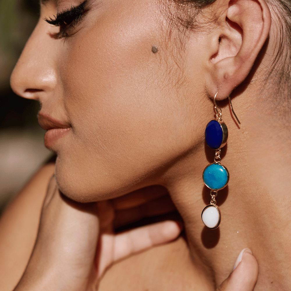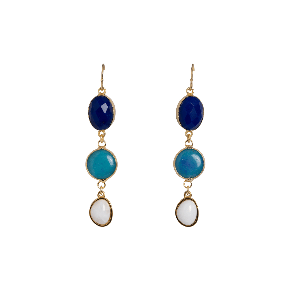 Orecchini con agata blu, agate azzurre e agata bianca.