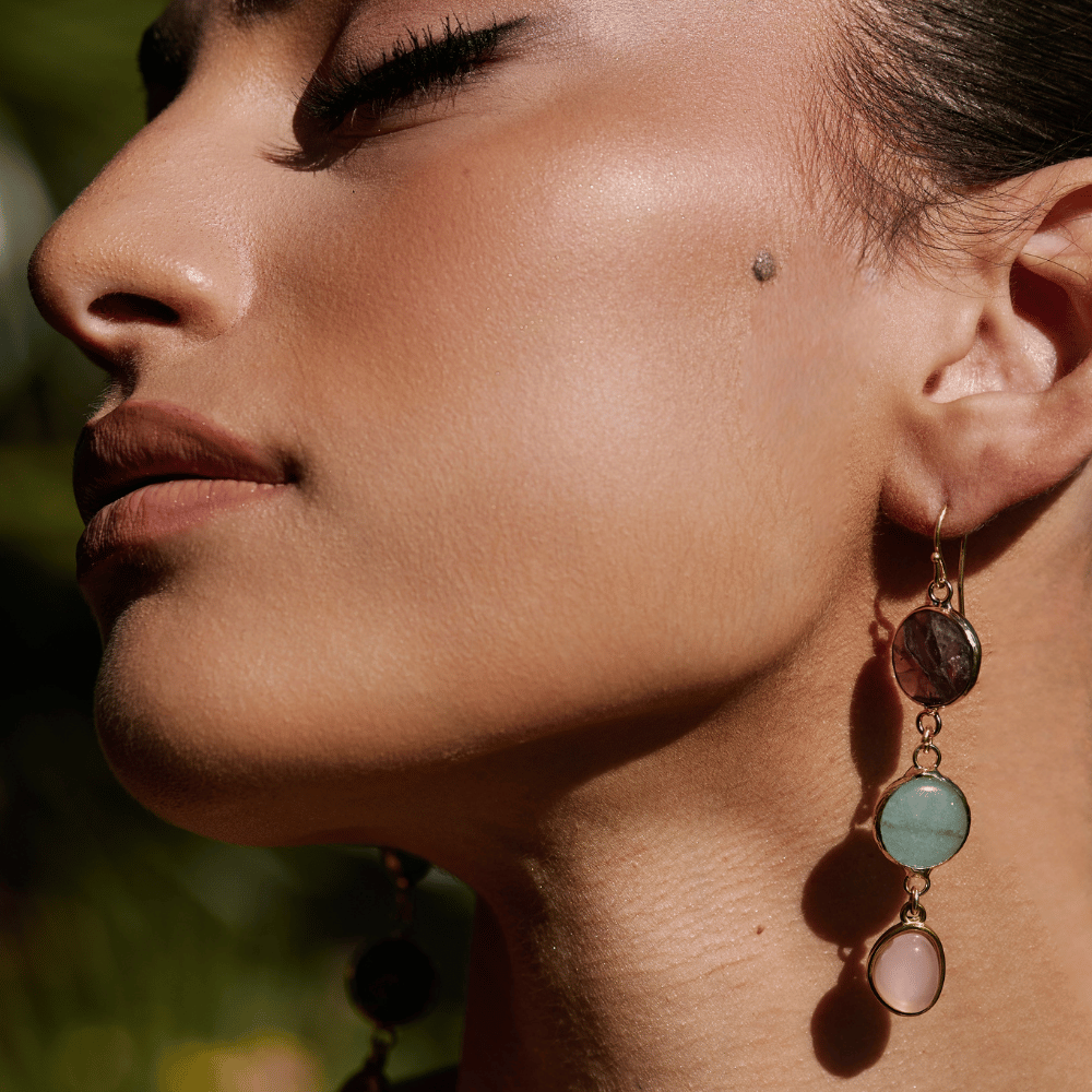 Montati in ottone con monachella coordinata, sono realizzati a mano recuperando pietre e componenti da gioielli vintage – un gioiello unico, sostenibile e irripetibile.